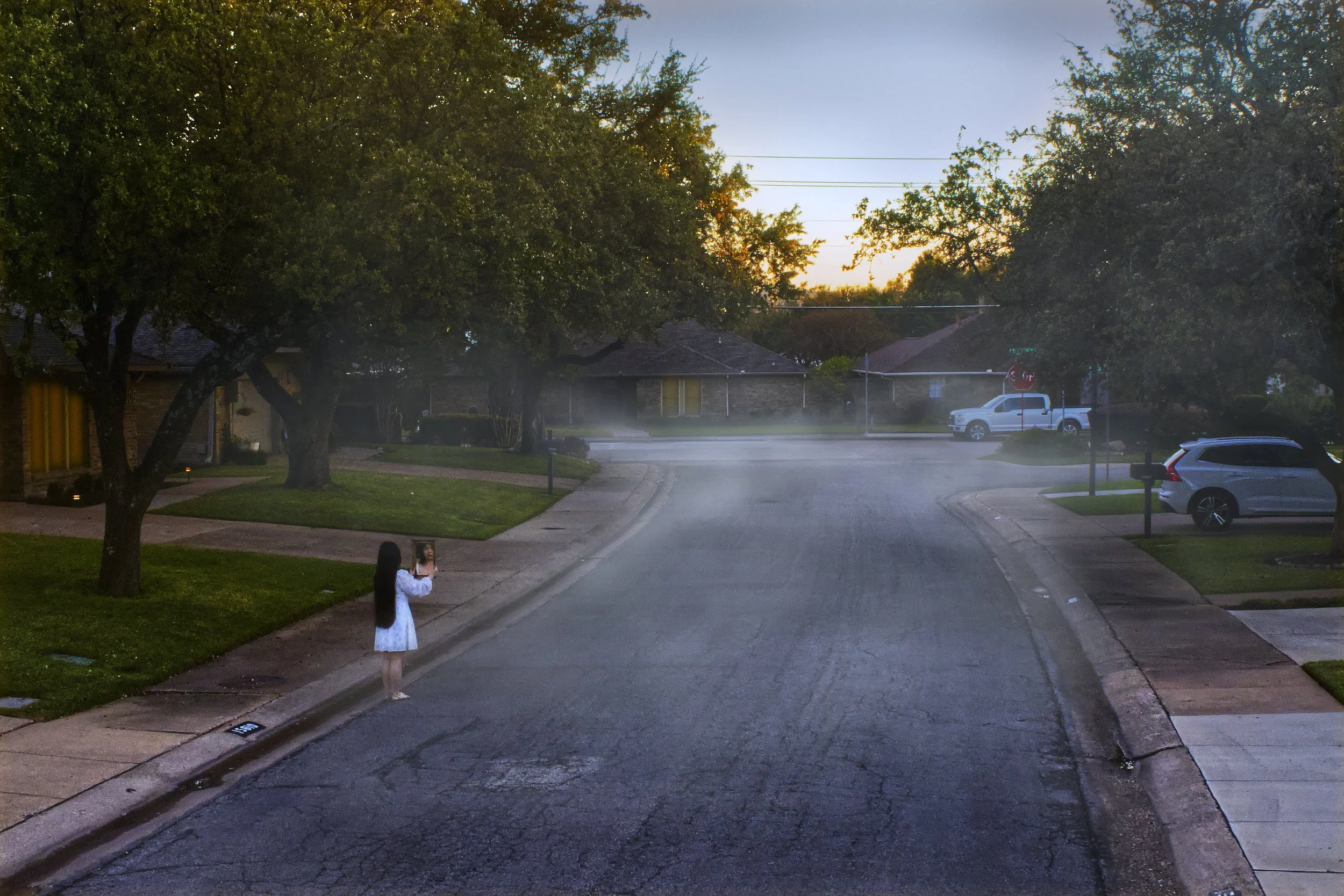 In trying to emulate Crewdson, I ran into a glaring roadblock; I don’t have $1M, a movie crew, and a crane. What I needed to do first was figure out how I could create an ultra-high quality image with just my DSLR, a tripod, and a model. Next, I planned a location for the shoot that had a wide, dark pavement street, as I knew this contrast and open space would lend itself to Crewdson’s aesthetic well. Upon reviewing my first final product, however, I realized how much deeper I would need to look into Crewdson’s style. My image was too bright, had harsh shadows, and I had not done my HDR calibration correctly the first time, so not all the shadows and highlights were in high detail. For my next attempt, I returned to the same street, with the same model, but later in the day. I took about twice as many shots this time, allowing myself to be sure of the HDR merging viability, as well as focus merging, as this would allow me to emulate the level of detail Crewdson displays in his images. Lastly, I worked on editing and color grading. Crewdson’s images have a dreamlike feel to them and a surreal level of storytelling from just one image. I added a faint glow to the windows of two houses, enhanced the glow of the sunset, lightened the value of the grass, and added a layer of fog over the street-a staple of Crewdson’s.